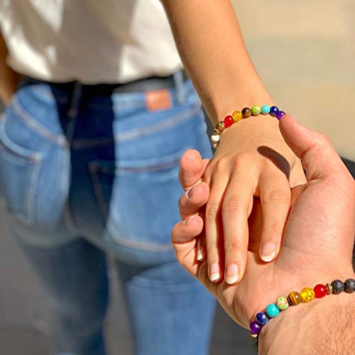 - ✅ NATURPERLEN – Die 7 Chakra Perlen bestehen aus Rotem Achat, Amber, dem gelben Tigerauge, grüner Jaspis, Turquoise, Lapislazuli & Amethyst. Die 4 Armbandvarianten kombinieren die 7 Chakras mit weißem Turquoise, dem gelben Tigerauge, Lava & Amethyst.