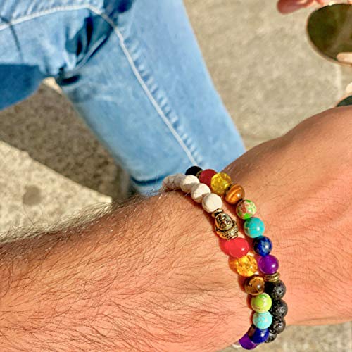 - ✅ DESIGN – Durchdachte Farbkombinationen, sodass man die Armbänder mit allen Kleidungen kombinieren kann. Es gibt keine unnötigen Teile, das Design wurde minimalistisch gehalten. Es gibt kein auffälliges Branding auf den Armbändern. Das Branding ist auf der Verpackung. Das weiße Howlith Armband ist mit Buddha Kopf designed. Daher ist es auch als Buddha Armband geeignet.