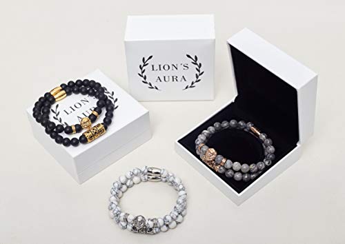 ✅ HOCHWERTIG – Jede Perle ist ein Unikat. Sie sind schätze aus der Erde. Sie wurden auf 8mm poliert. In Kombination mit den Löwen-Details entsteht ein perfekter Kontrast.