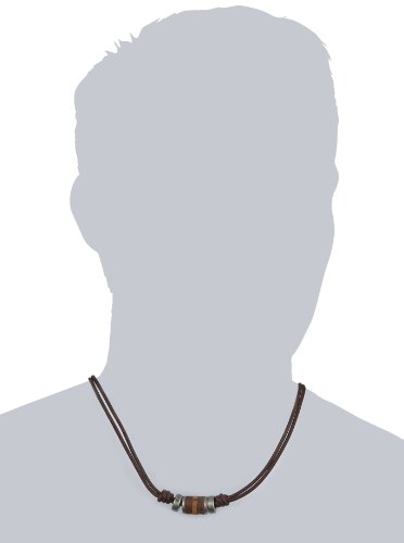 Kette, Fossil. Aus braunem Leder, mit Edelstahl kombiniert, ca. 45 cm lang + ca. 5 cm Verlängerung. Lieferung in einer FOSSIL-Verpackung.