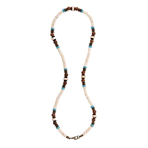 Made by Nami Surfer Halskette mit Kokosnuss Perlen – Herren Surfer-Kette Holz-Perlen – Handmade Strand-Schmuck – Wasserfest (Weiß/Braun)