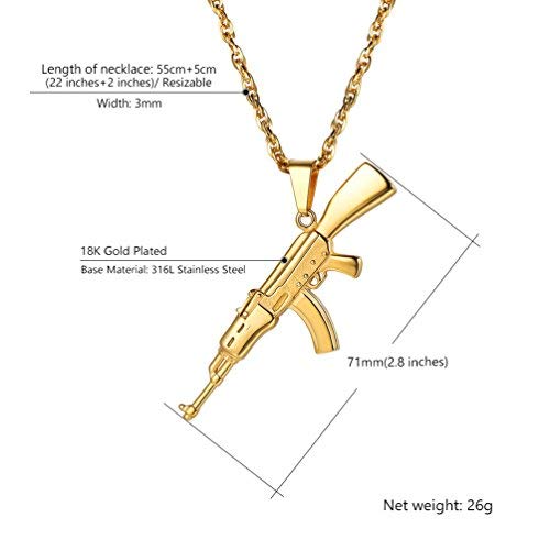 Details: PROSTEEL Herren Halskette AK47/M16A4 Armee Gewehr Anhänger Edelstahl/18k vergoldet Herren Jungen Rock Stil Modeschmuck mit 60cm Singapurkette