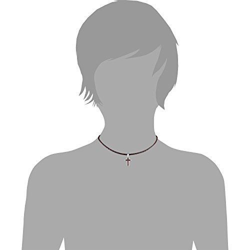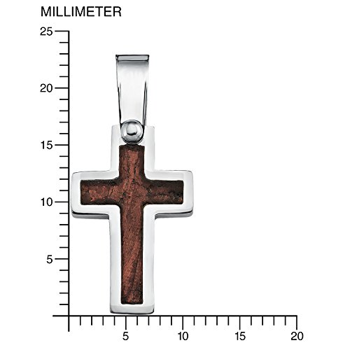 s.Oliver Jungen-Kette mit Kreuz-Anhänger aus Edelstahl, Holz, Leder geflochten, längenverstellbar (40+3 cm)