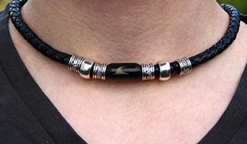 Details: WAVEPIRATE® Echt Leder-Halskette Charm F Schwarz/SW Herren Männer