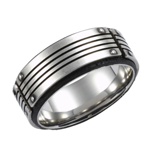 - Herrenring aus Edelstahl mit Lederbesatz