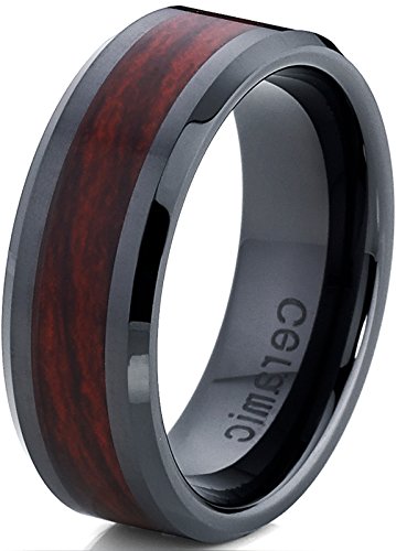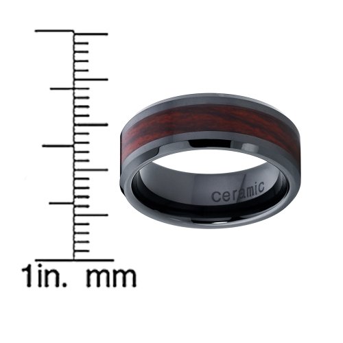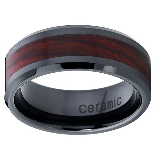 - Schwarz Keramik Dome Ehering Mit Holzeinlage