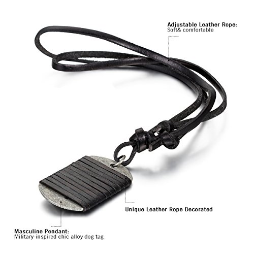 Details: Cupimatch Erkennungsmarke im Retro-Stil, Legierung, Halsketten-Anhänger für Herren/Jungen mit Verstellbarer schwarzer Leder-Kette, passt für 39,9 cm-80 cm Handgelenk